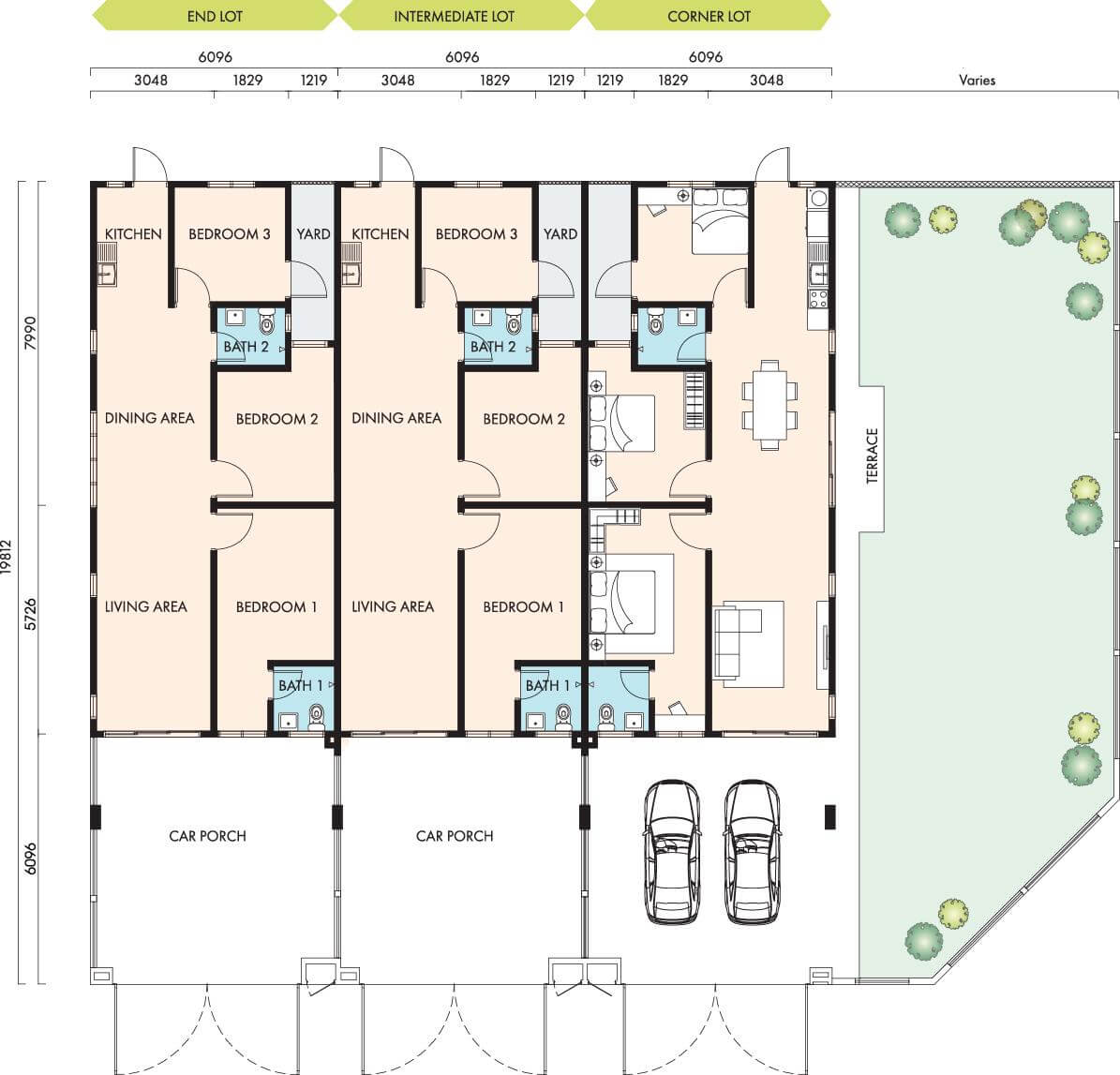 | Land Size | 20' x 70' to 110' |